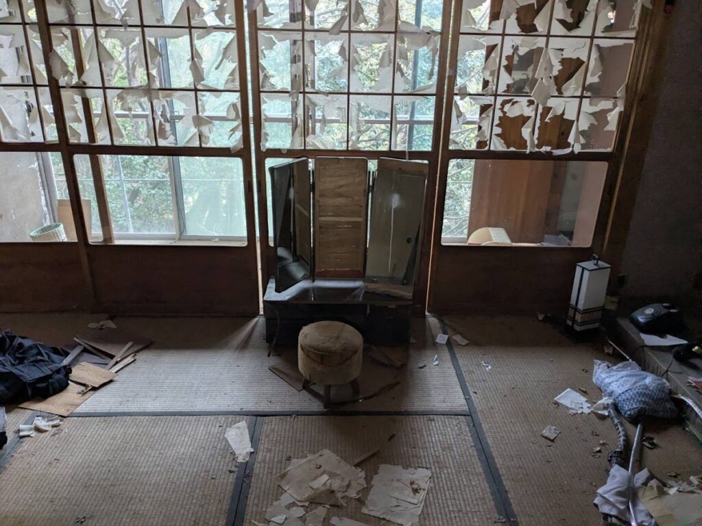 特に恐怖体験は無く、土に還った土産物、やけにキレイな布団、腐り崩壊した畳や屋根、なぜか生活感を感じる居間、など。